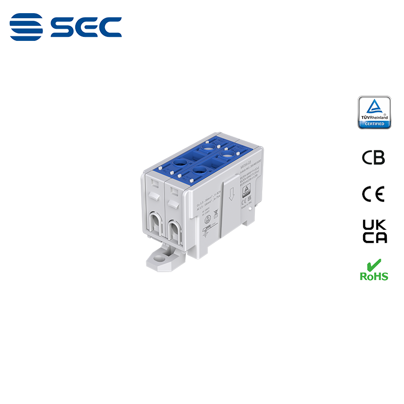 SAT series Al/Cu universal terminal block is totally patent design product by STRONG ELECTRIC, which offers the best quality, safety installation features in the market. All the product already got TUV mark, CB, CE, UKCA, RoHS certificate. It was designed for both copper conductor and Aluminum conductor. The most important is this terminal block are allowed each pieces of product can connect each other easily.