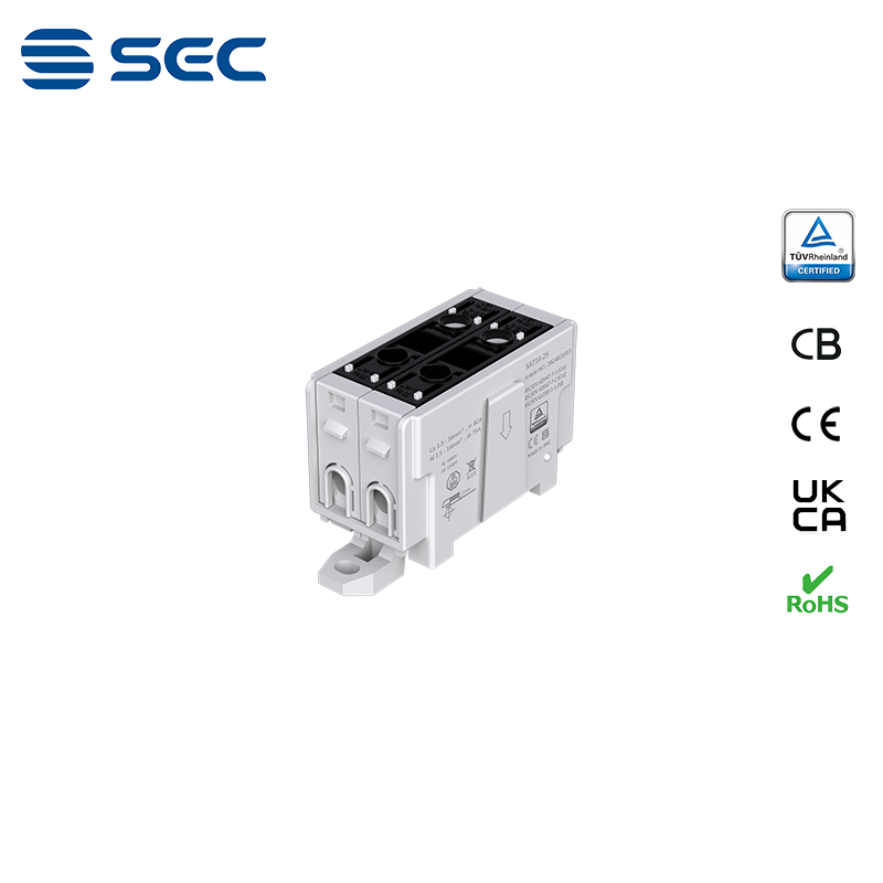 SAT series Al/Cu universal terminal block is totally patent design product by STRONG ELECTRIC, which offers the best quality, safety installation features in the market. All the product already got TUV mark, CB, CE, UKCA, RoHS certificate. It was designed for both copper conductor and Aluminum conductor. The most important is this terminal block are allowed each pieces of product can connect each other easily.
