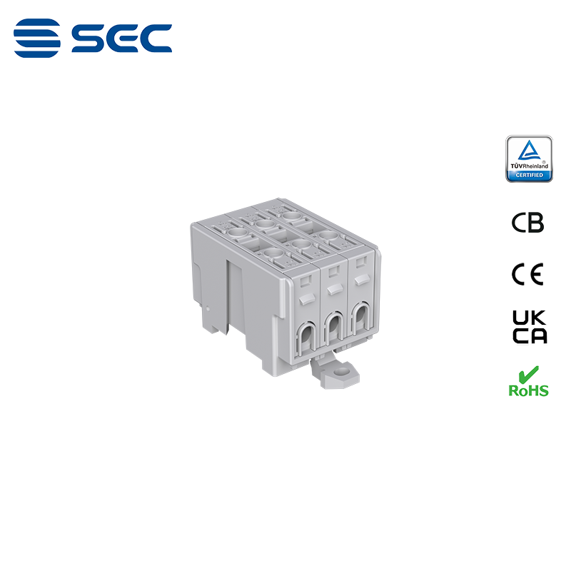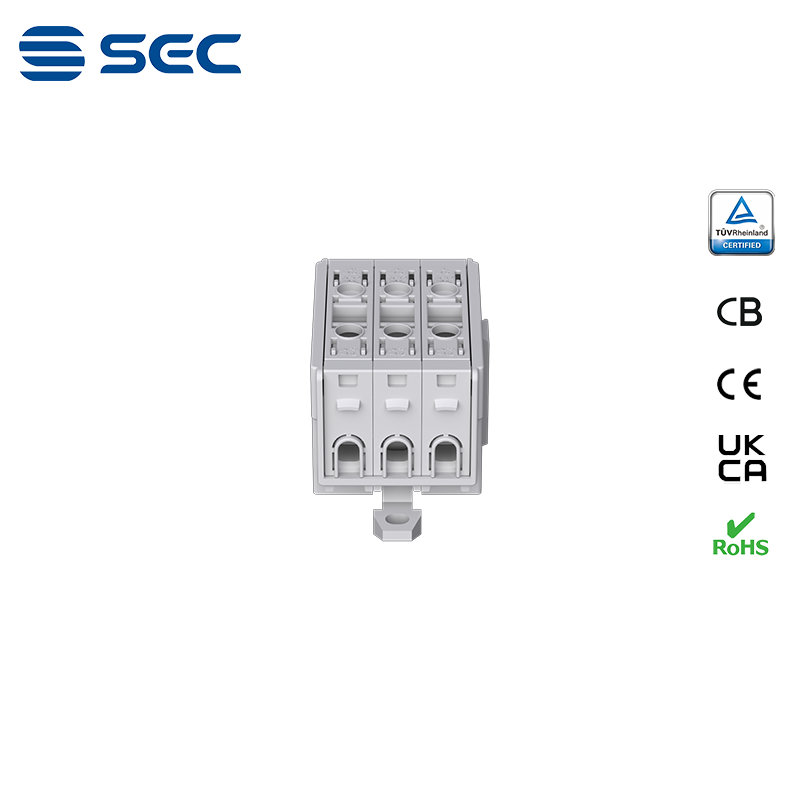 SAT series Al/Cu universal terminal block is totally patent design product by STRONG ELECTRIC, which offers the best quality, safety installation features in the market. All the product already got TUV mark, CB,CE,UKCA, RoHS certificate. It was designed for both copper conductor and Aluminum conductor. The most important is this terminal block are allowed each pieces of product can connect each other easily.