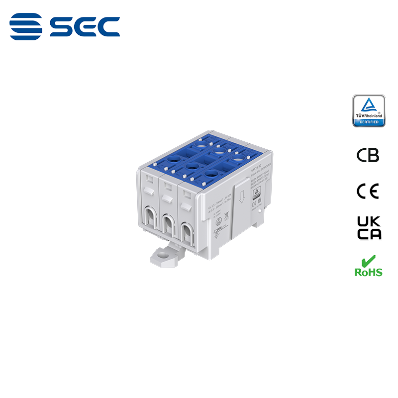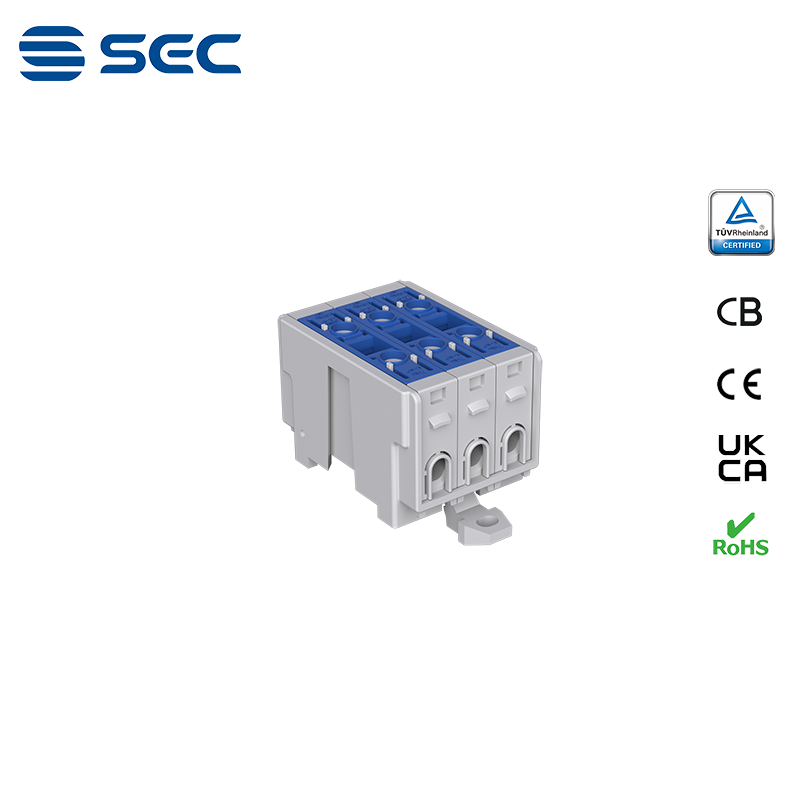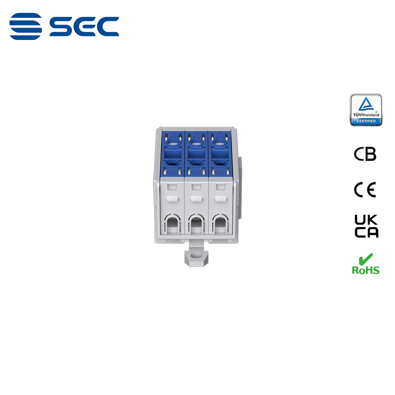 SAT series Al/Cu universal terminal block is totally patent design product by STRONG ELECTRIC, which offers the best quality, safety installation features in the market. All the product already got TUV mark, CB,CE,UKCA, RoHS certificate. It was designed for both copper conductor and Aluminum conductor. The most important is this terminal block are allowed each pieces of product can connect each other easily.