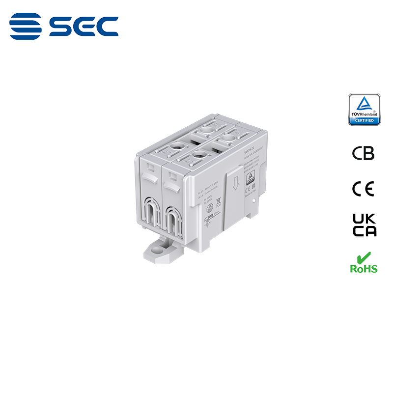 SAT series Al/Cu universal terminal block is totally patent design product by STRONG ELECTRIC, which offers the best quality, safety installation features in the market. All the product already got TUV mark, CB,CE,UKCA, RoHS certificate. It was designed for both copper conductor and Aluminum conductor. The most important is this terminal block are allowed each pieces of product can connect each other easily.
