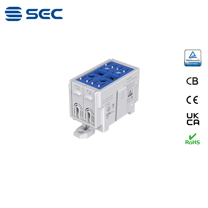 SAT series Al/Cu universal terminal block is totally patent design product by STRONG ELECTRIC, which offers the best quality, safety installation features in the market. All the product already got TUV mark, CB,CE,UKCA, RoHS certificate. It was designed for both copper conductor and Aluminum conductor. The most important is this terminal block are allowed each pieces of product can connect each other easily.