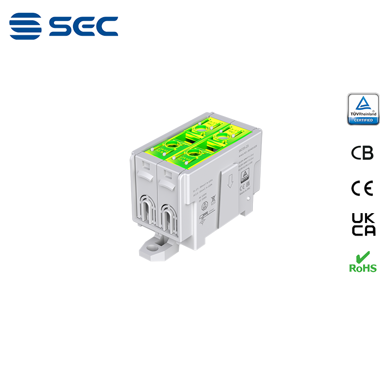 SAT series Al/Cu universal terminal block is totally patent design product by STRONG ELECTRIC, which offers the best quality, safety installation features in the market. All the product already got TUV mark, CB,CE,UKCA, RoHS certificate. It was designed for both copper conductor and Aluminum conductor. The most important is this terminal block are allowed each pieces of product can connect each other easily.