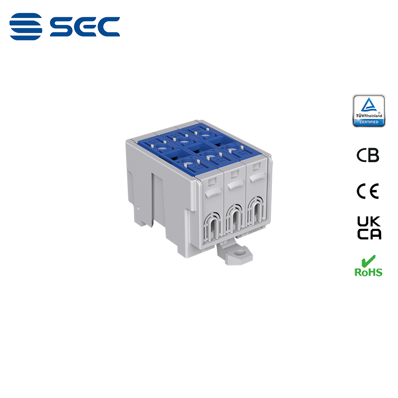 SAT series Al/Cu universal terminal block is totally patent design product by STRONG ELECTRIC, which offers the best quality, safety installation features in the market. All the product already got TUV mark, CB,CE,UKCA, RoHS certificate. It was designed for both copper conductor and Aluminum conductor. The most important is this terminal block are allowed each pieces of product can connect each other easily.