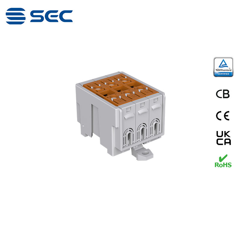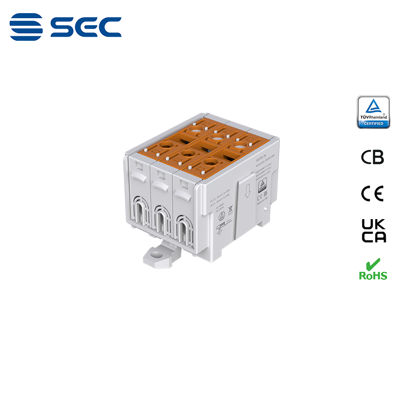 SAT series Al/Cu universal terminal block is totally patent design product by STRONG ELECTRIC, which offers the best quality, safety installation features in the market. All the product already got TUV mark, CB,CE,UKCA, RoHS certificate. It was designed for both copper conductor and Aluminum conductor. The most important is this terminal block are allowed each pieces of product can connect each other easily.