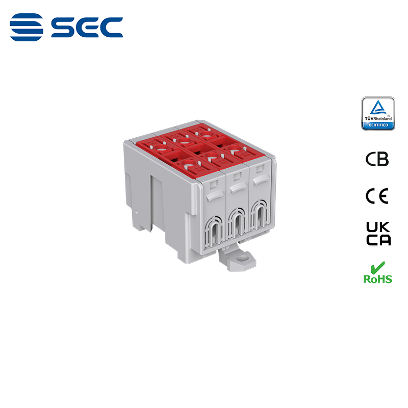 SAT series Al/Cu universal terminal block is totally patent design product by STRONG ELECTRIC, which offers the best quality, safety installation features in the market. All the product already got TUV mark, CB,CE,UKCA, RoHS certificate. It was designed for both copper conductor and Aluminum conductor. The most important is this terminal block are allowed each pieces of product can connect each other easily.