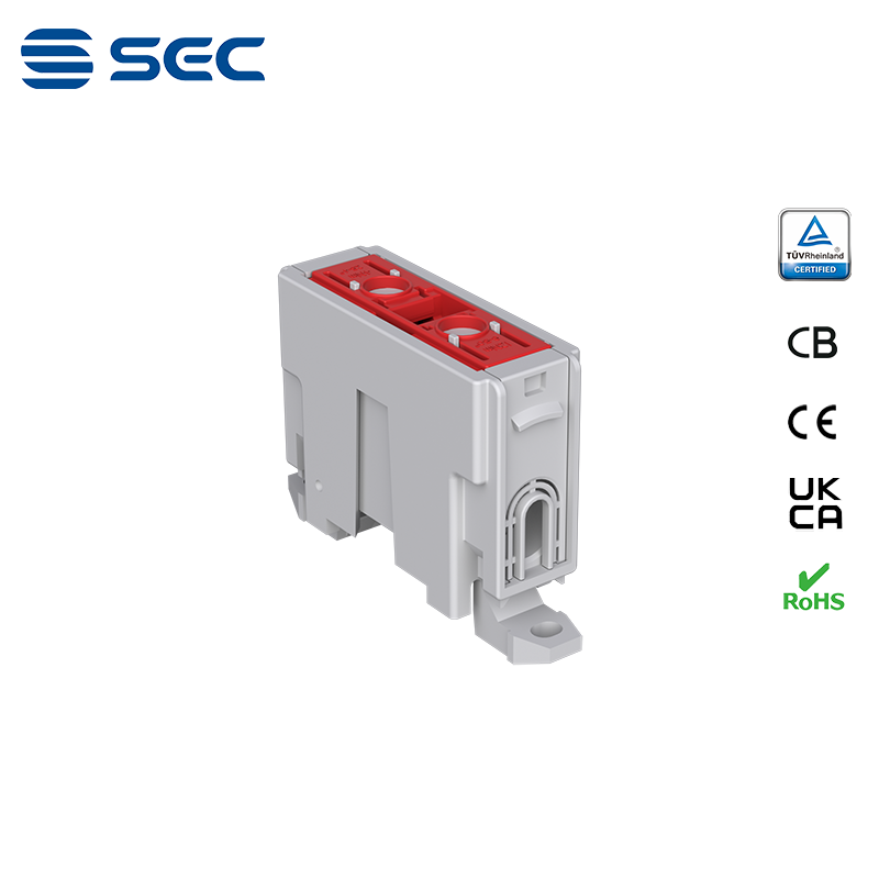 SAT series Al/Cu universal terminal block is totally patent design product by STRONG ELECTRIC, which offers the best quality, safety installation features in the market. All the product already got TUV mark, CB,CE,UKCA, RoHS certificate. It was designed for both copper conductor and Aluminum conductor. The most important is this terminal block are allowed each pieces of product can connect each other easily.