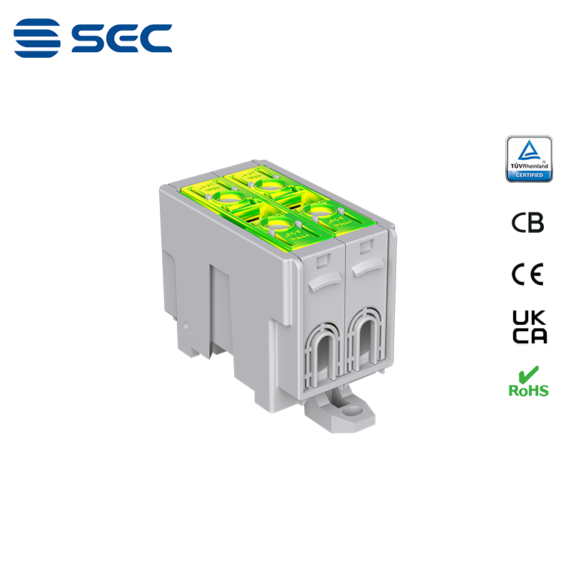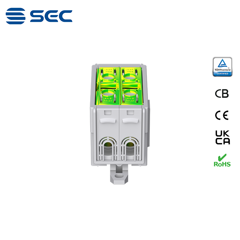 SAT series Al/Cu universal terminal block is totally patent design product by STRONG ELECTRIC, which offers the best quality, safety installation features in the market. All the product already got TUV mark, CB,CE,UKCA, RoHS certificate. It was designed for both copper conductor and Aluminum conductor. The most important is this terminal block are allowed each pieces of product can connect each other easily.