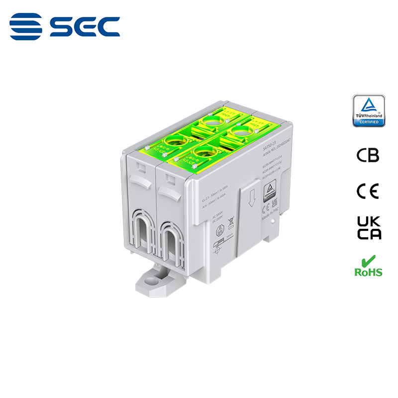 SAT series Al/Cu universal terminal block are shorted circuit tested and certified which is class A terminal.
