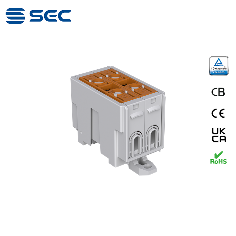SAT series Al/Cu universal terminal block is totally patent design product by STRONG ELECTRIC, which offers the best quality, safety installation features in the market. All the product already got TUV mark, CB,CE,UKCA, RoHS certificate. It was designed for both copper conductor and Aluminum conductor. The most important is this terminal block are allowed each pieces of product can connect each other easily.