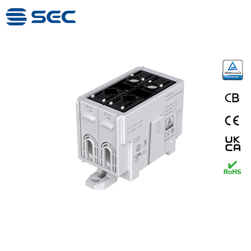 SAT series Al/Cu universal terminal block is totally patent design product by STRONG ELECTRIC, which offers the best quality, safety installation features in the market. All the product already got TUV mark, CB,CE,UKCA, RoHS certificate. It was designed for both copper conductor and Aluminum conductor. The most important is this terminal block are allowed each pieces of product can connect each other easily.