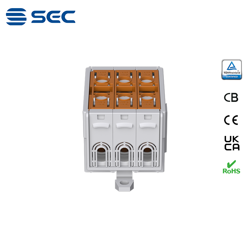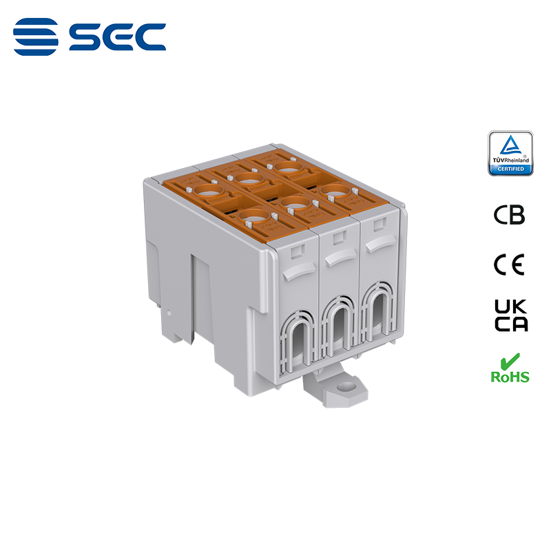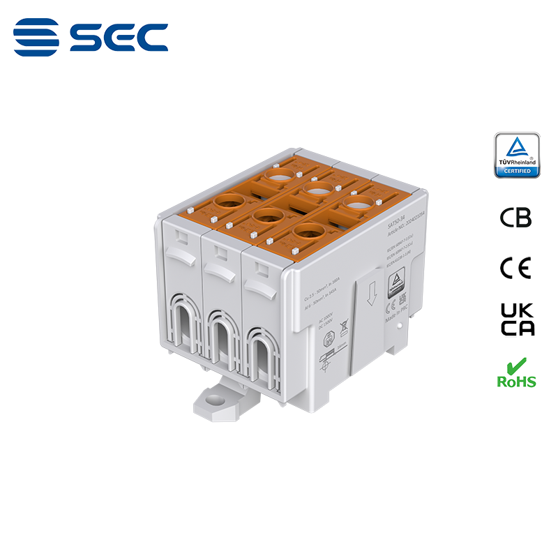 SAT series Al/Cu universal terminal block is totally patent design product by STRONG ELECTRIC, which offers the best quality, safety installation features in the market. All the product already got TUV mark, CB,CE,UKCA, RoHS certificate. It was designed for both copper conductor and Aluminum conductor. The most important is this terminal block are allowed each pieces of product can connect each other easily.