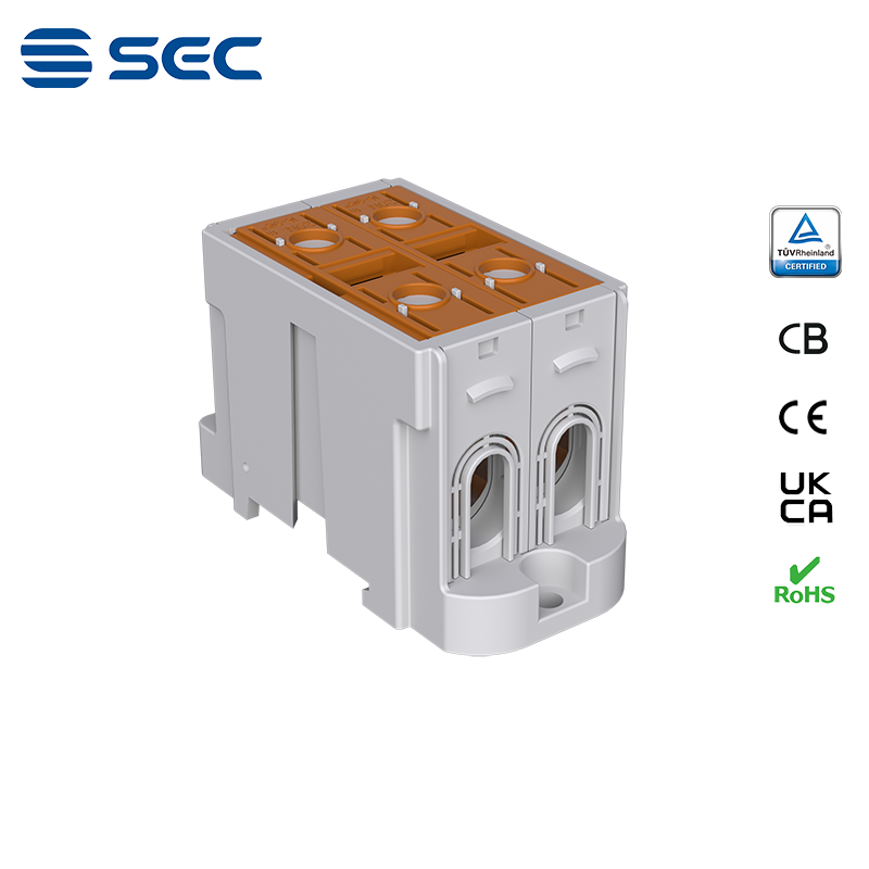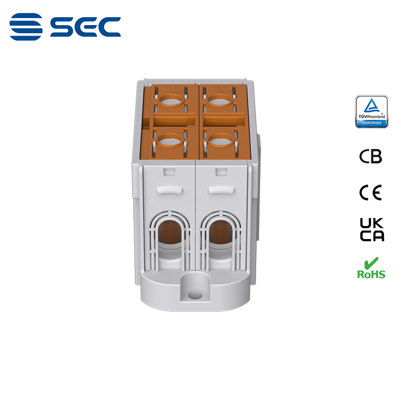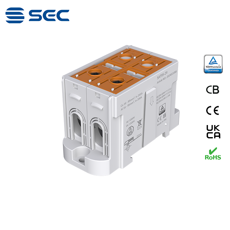 SAT series Al/Cu universal terminal block is totally patent design product by STRONG ELECTRIC, which offers the best quality, safety installation features in the market. All the product already got TUV mark, CB, CE, UKCA, RoHS certificate. It was designed for both copper conductor and Aluminum conductor. The most important is this terminal block are allowed each pieces of product can connect each other easily.