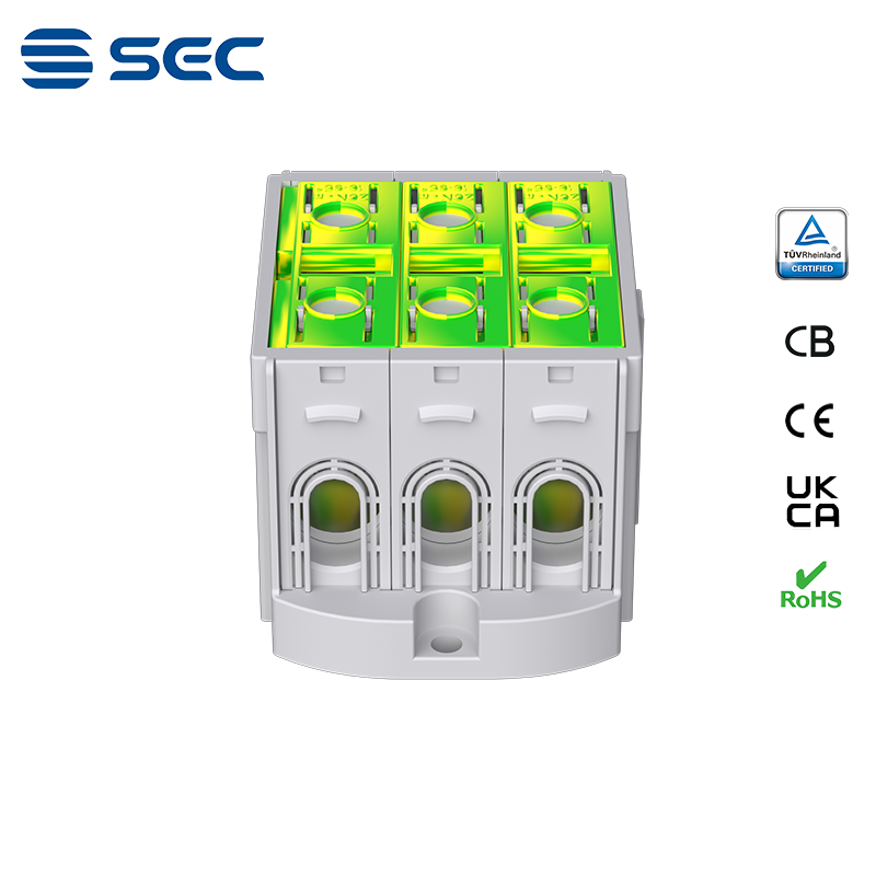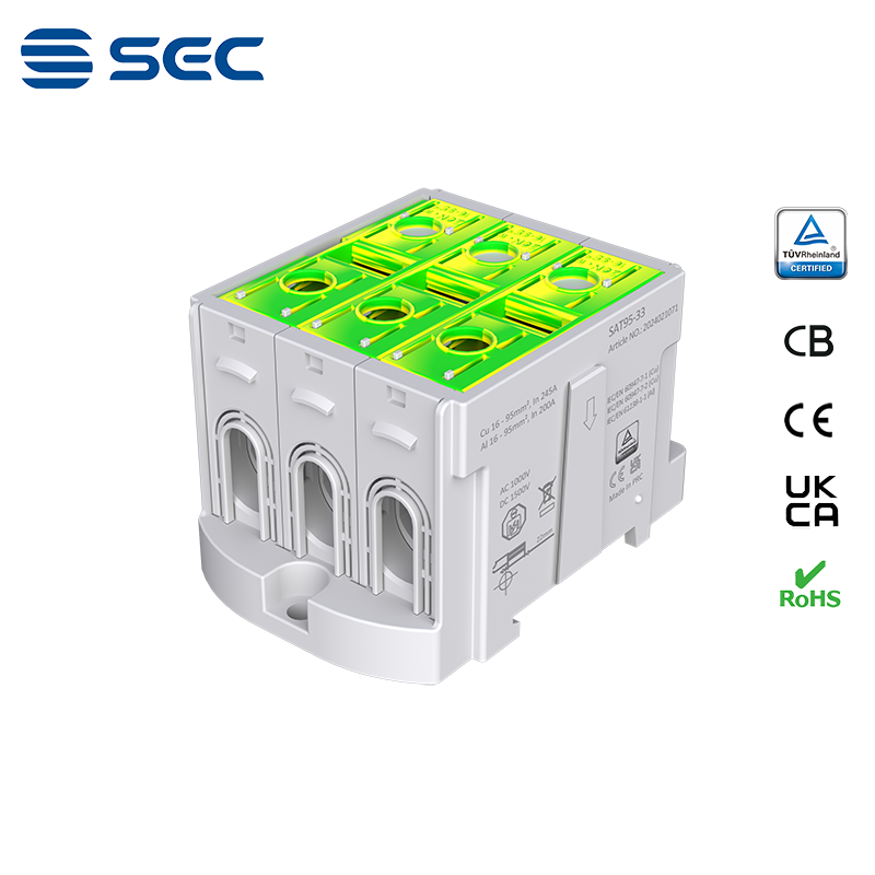 SAT series Al/Cu universal terminal block is totally patent design product by STRONG ELECTRIC, which offers the best quality, safety installation features in the market. All the product already got TUV mark, CB, CE, UKCA, RoHS certificate. It was designed for both copper conductor and Aluminum conductor. The most important is this terminal block are allowed each pieces of product can connect each other easily.