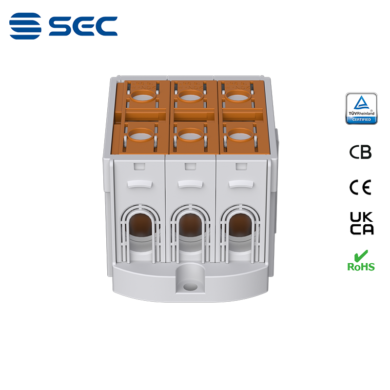 SAT series Al/Cu universal terminal block is totally patent design product by STRONG ELECTRIC, which offers the best quality, safety installation features in the market. All the product already got TUV mark, CB ,CE, UKCA, RoHS certificate. It was designed for both copper conductor and Aluminum conductor. The most important is this terminal block are allowed each pieces of product can connect each other easily.