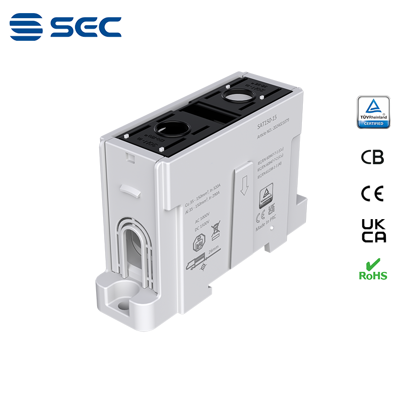 SAT series Al/Cu universal terminal block is totally patent design product by STRONG ELECTRIC, which offers the best quality, safety installation features in the market. All the product already got TUV mark, CB, CE, UKCA, RoHS certificate. It was designed for both copper conductor and Aluminum conductor. The most important is this terminal block are allowed each pieces of product can connect each other easily.