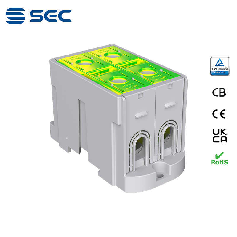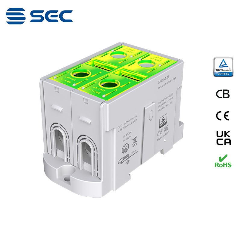 SAT series Al/Cu universal terminal block is totally patent design product by STRONG ELECTRIC, which offers the best quality, safety installation features in the market. All the product already got TUV mark, CB, CE, UKCA, RoHS certificate. It was designed for both copper conductor and Aluminum conductor. The most important is this terminal block are allowed each pieces of product can connect each other easily.