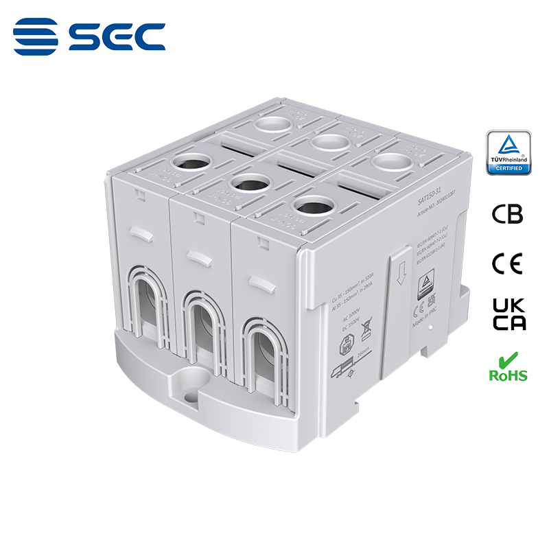 SAT series Al/Cu universal terminal block is totally patent design product by STRONG ELECTRIC, which offers the best quality, safety installation features in the market. All the product already got TUV mark, CB, CE, UKCA, RoHS certificate. It was designed for both copper conductor and Aluminum conductor. The most important is this terminal block are allowed each pieces of product can connect each other easily.