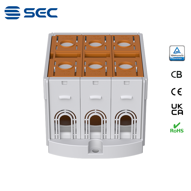 SAT series Al/Cu universal terminal block is totally patent design product by STRONG ELECTRIC, which offers the best quality, safety installation features in the market. All the product already got TUV mark, CB, CE, UKCA, RoHS certificate. It was designed for both copper conductor and Aluminum conductor. The most important is this terminal block are allowed each pieces of product can connect each other easily.