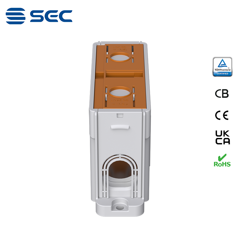 SAT series Al/Cu universal terminal block is totally patent design product by STRONG ELECTRIC, which offers the best quality, safety installation features in the market. All the product already got TUV mark, CB, CE, UKCA, RoHS certificate. It was designed for both copper conductor and Aluminum conductor. The most important is this terminal block are allowed each pieces of product can connect each other easily.