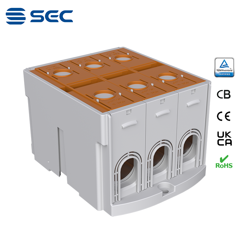 SAT series Al/Cu universal terminal block is totally patent design product by STRONG ELECTRIC, which offers the best quality, safety installation features in the market. All the product already got TUV mark, CB, CE, UKCA, RoHS certificate. It was designed for both copper conductor and Aluminum conductor. The most important is this terminal block are allowed each pieces of product can connect each other easily.