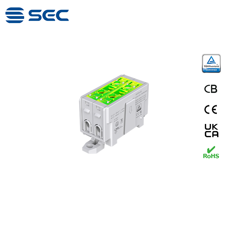 SAT series Al/Cu universal terminal block is totally patent design product by STRONG ELECTRIC, which offers the best quality, safety installation features in the market. All the product already got TUV mark, CB, CE, UKCA, RoHS certificate. It was designed for both copper conductor and Aluminum conductor. The most important is this terminal block are allowed each pieces of product can connect each other easily.