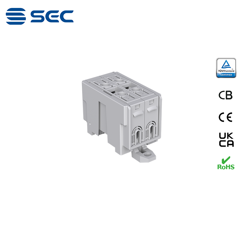 SAT series Al/Cu universal terminal block is totally patent design product by STRONG ELECTRIC, which offers the best quality, safety installation features in the market. All the product already got TUV mark, CB,CE,UKCA, RoHS certificate. It was designed for both copper conductor and Aluminum conductor. The most important is this terminal block are allowed each pieces of product can connect each other easily.