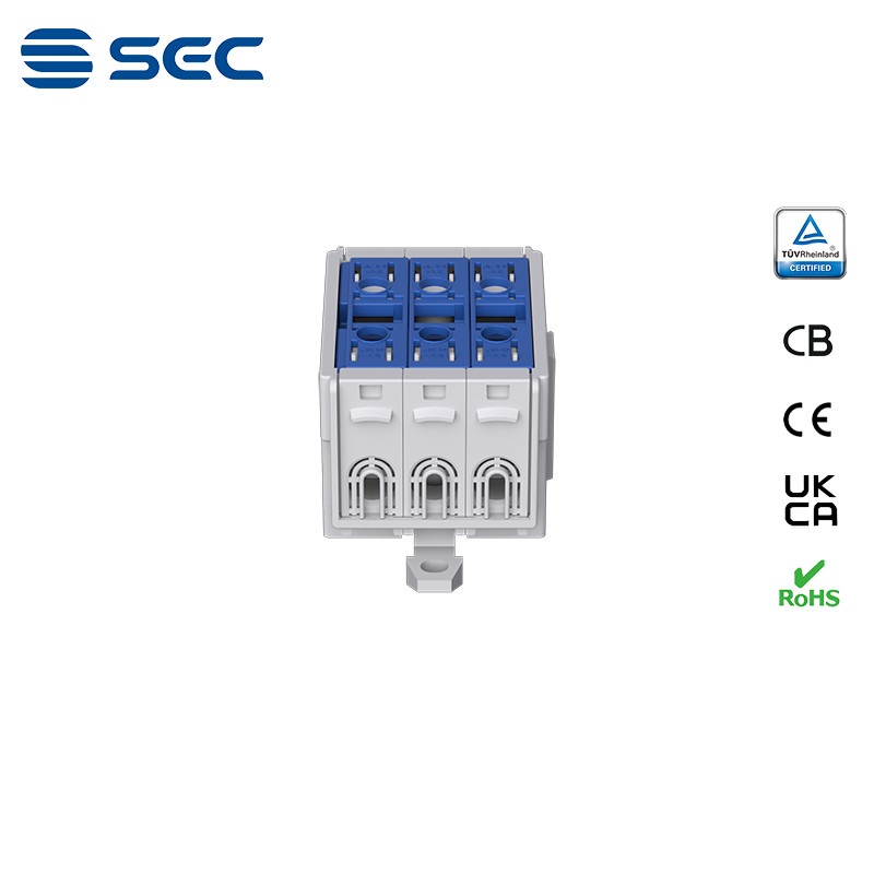 SAT series Al/Cu universal terminal block is totally patent design product by STRONG ELECTRIC, which offers the best quality, safety installation features in the market. All the product already got TUV mark, CB,CE,UKCA, RoHS certificate. It was designed for both copper conductor and Aluminum conductor. The most important is this terminal block are allowed each pieces of product can connect each other easily.