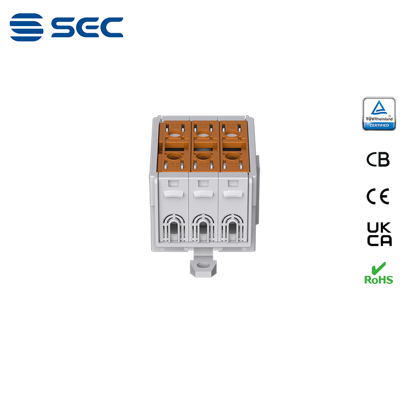 SAT series Al/Cu universal terminal block is totally patent design product by STRONG ELECTRIC, which offers the best quality, safety installation features in the market. All the product already got TUV mark, CB,CE,UKCA, RoHS certificate. It was designed for both copper conductor and Aluminum conductor. The most important is this terminal block are allowed each pieces of product can connect each other easily.