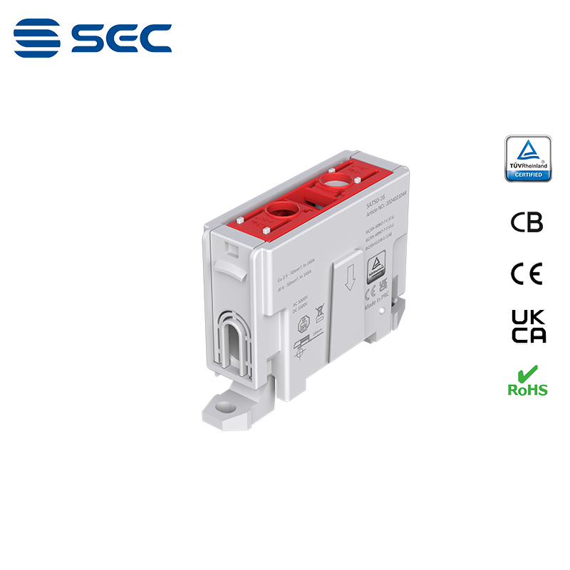 SAT series Al/Cu universal terminal block is totally patent design product by STRONG ELECTRIC, which offers the best quality, safety installation features in the market. All the product already got TUV mark, CB,CE,UKCA, RoHS certificate. It was designed for both copper conductor and Aluminum conductor. The most important is this terminal block are allowed each pieces of product can connect each other easily.