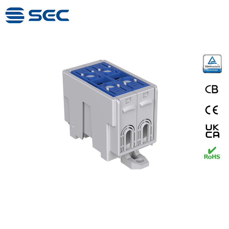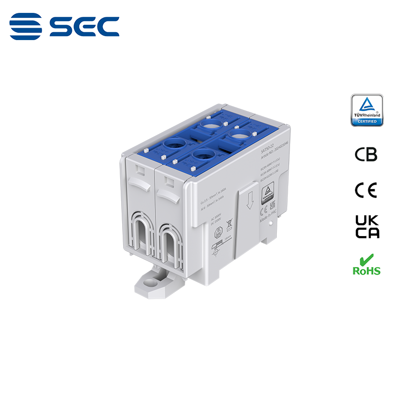 SAT series Al/Cu universal terminal block is totally patent design product by STRONG ELECTRIC, which offers the best quality, safety installation features in the market. All the product already got TUV, CB,CE,UKCA, RoHS certificate. It was designed for both copper conductor and Aluminum conductor. The most important is this terminal block are allowed each pieces of product can connect each other easily.