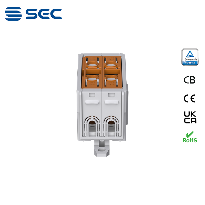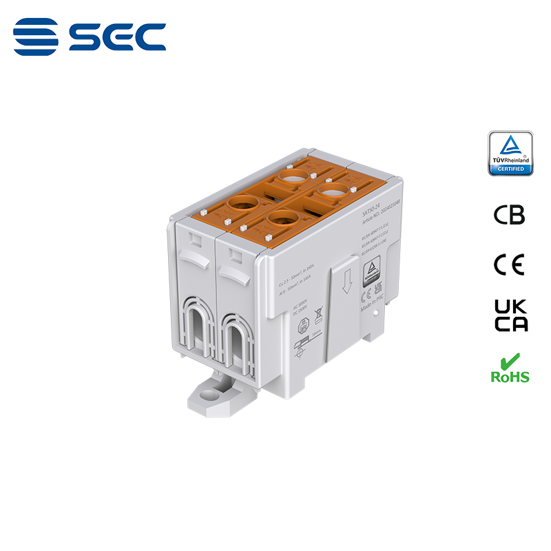 SAT series Al/Cu universal terminal block is totally patent design product by STRONG ELECTRIC, which offers the best quality, safety installation features in the market. All the product already got TUV mark, CB,CE,UKCA, RoHS certificate. It was designed for both copper conductor and Aluminum conductor. The most important is this terminal block are allowed each pieces of product can connect each other easily.