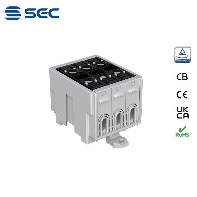 SAT series Al/Cu universal terminal block is totally patent design product by STRONG ELECTRIC, which offers the best quality, safety installation features in the market. All the product already got TUV mark, CB,CE,UKCA, RoHS certificate. It was designed for both copper conductor and Aluminum conductor. The most important is this terminal block are allowed each pieces of product can connect each other easily.