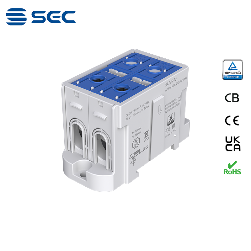 SAT series Al/Cu universal terminal block is totally patent design product by STRONG ELECTRIC, which offers the best quality, safety installation features in the market. All the product already got TUV mark, CB, CE, UKCA, RoHS certificate. It was designed for both copper conductor and Aluminum conductor. The most important is this terminal block are allowed each pieces of product can connect each other easily.
