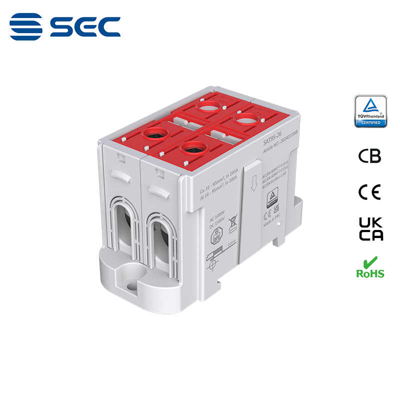 SAT series Al/Cu universal terminal block is totally patent design product by STRONG ELECTRIC, which offers the best quality, safety installation features in the market. All the product already got TUV mark, CB, CE, UKCA, RoHS certificate. It was designed for both copper conductor and Aluminum conductor. The most important is this terminal block are allowed each pieces of product can connect each other easily.