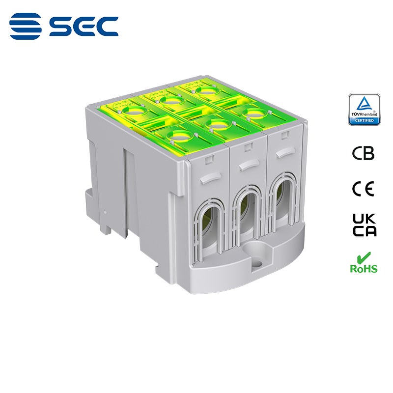 SAT series Al/Cu universal terminal block is totally patent design product by STRONG ELECTRIC, which offers the best quality, safety installation features in the market. All the product already got TUV mark, CB, CE, UKCA, RoHS certificate. It was designed for both copper conductor and Aluminum conductor. The most important is this terminal block are allowed each pieces of product can connect each other easily.