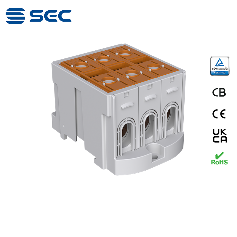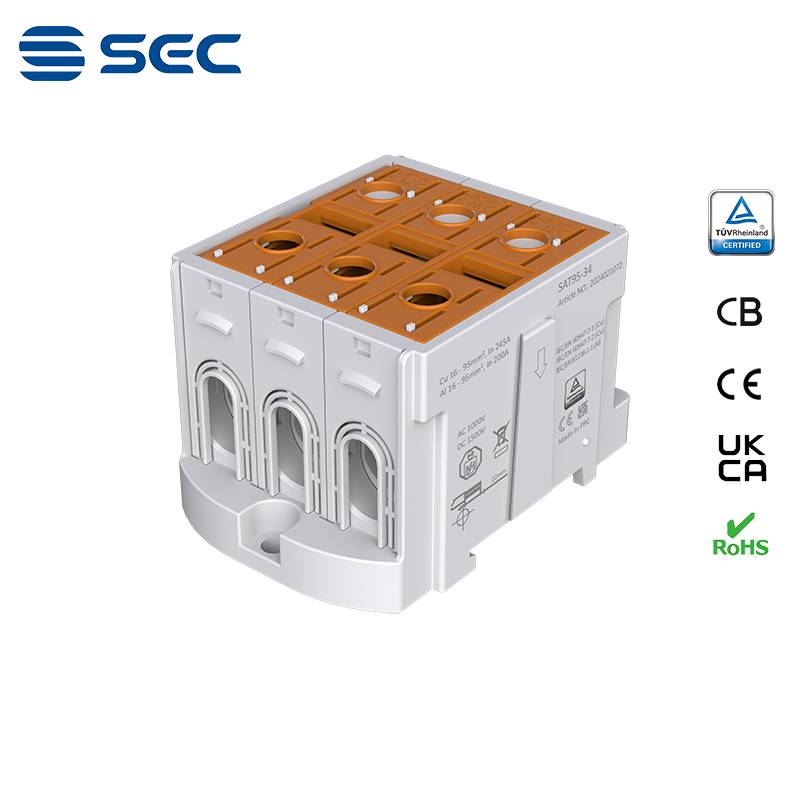 SAT series Al/Cu universal terminal block is totally patent design product by STRONG ELECTRIC, which offers the best quality, safety installation features in the market. All the product already got TUV mark, CB ,CE, UKCA, RoHS certificate. It was designed for both copper conductor and Aluminum conductor. The most important is this terminal block are allowed each pieces of product can connect each other easily.