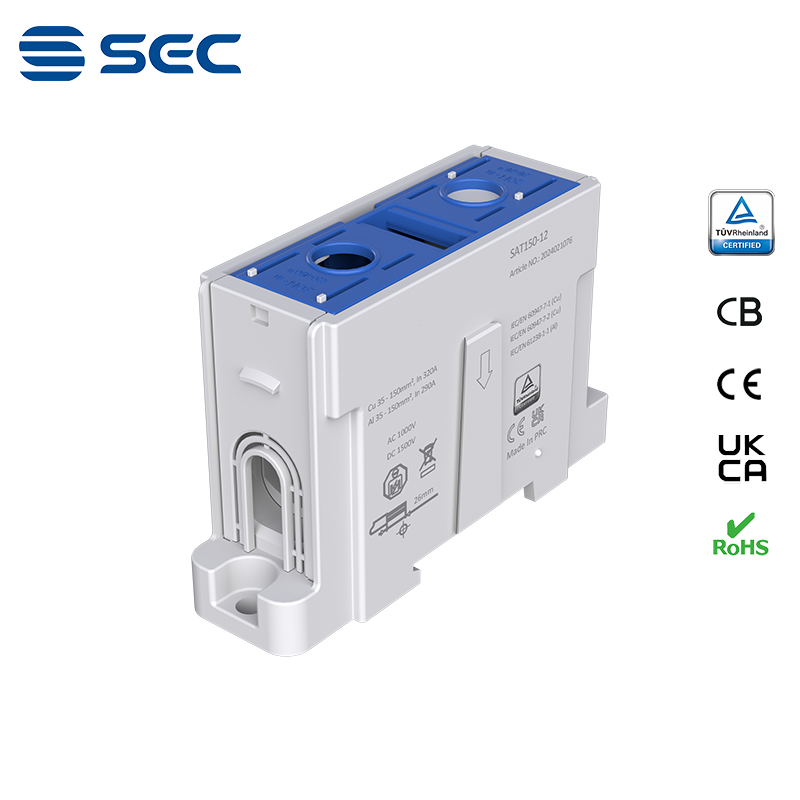 SAT series Al/Cu universal terminal block is totally patent design product by STRONG ELECTRIC, which offers the best quality, safety installation features in the market. All the product already got TUV mark, CB, CE, UKCA, RoHS certificate. It was designed for both copper conductor and Aluminum conductor. The most important is this terminal block are allowed each pieces of product can connect each other easily.
