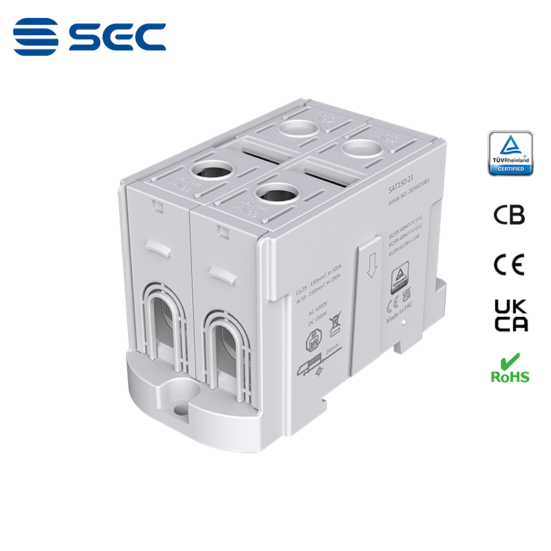 SAT series Al/Cu universal terminal block is totally patent design product by STRONG ELECTRIC, which offers the best quality, safety installation features in the market. All the product already got TUV mark, CB, CE, UKCA, RoHS certificate. It was designed for both copper conductor and Aluminum conductor. The most important is this terminal block are allowed each pieces of product can connect each other easily.