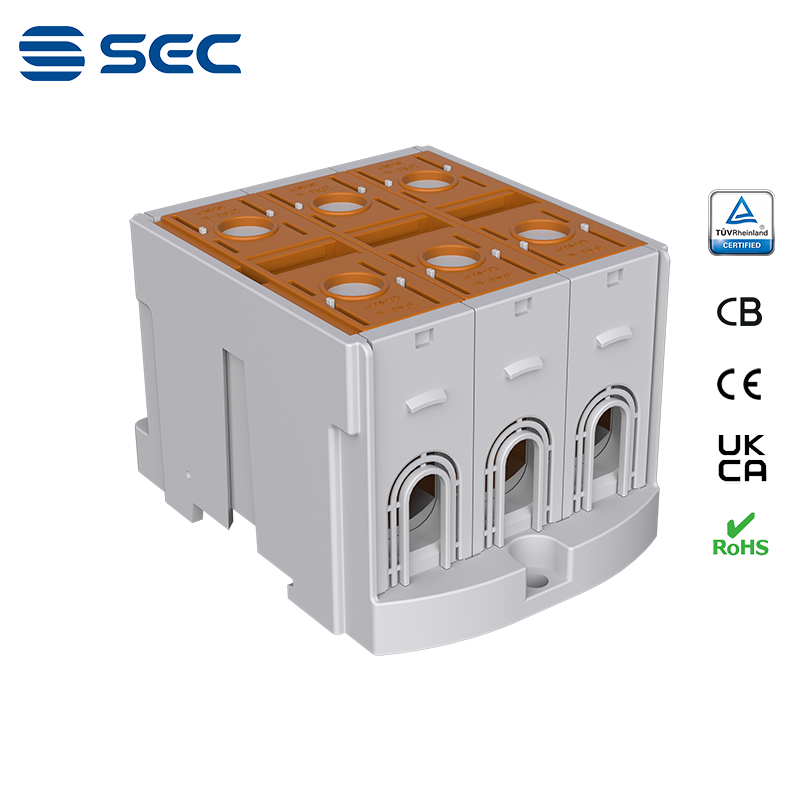 SAT series Al/Cu universal terminal block is totally patent design product by STRONG ELECTRIC, which offers the best quality, safety installation features in the market. All the product already got TUV mark, CB, CE, UKCA, RoHS certificate. It was designed for both copper conductor and Aluminum conductor. The most important is this terminal block are allowed each pieces of product can connect each other easily.