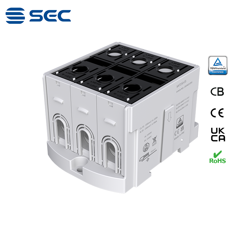 SAT series Al/Cu universal terminal block is totally patent design product by STRONG ELECTRIC, which offers the best quality, safety installation features in the market. All the product already got TUV mark, CB, CE, UKCA, RoHS certificate. It was designed for both copper conductor and Aluminum conductor. The most important is this terminal block are allowed each pieces of product can connect each other easily.