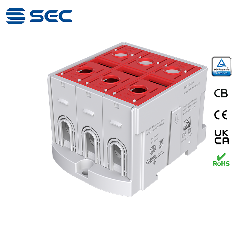 SAT series Al/Cu universal terminal block is totally patent design product by STRONG ELECTRIC, which offers the best quality, safety installation features in the market. All the product already got TUV mark, CB, CE, UKCA, RoHS certificate. It was designed for both copper conductor and Aluminum conductor. The most important is this terminal block are allowed each pieces of product can connect each other easily.