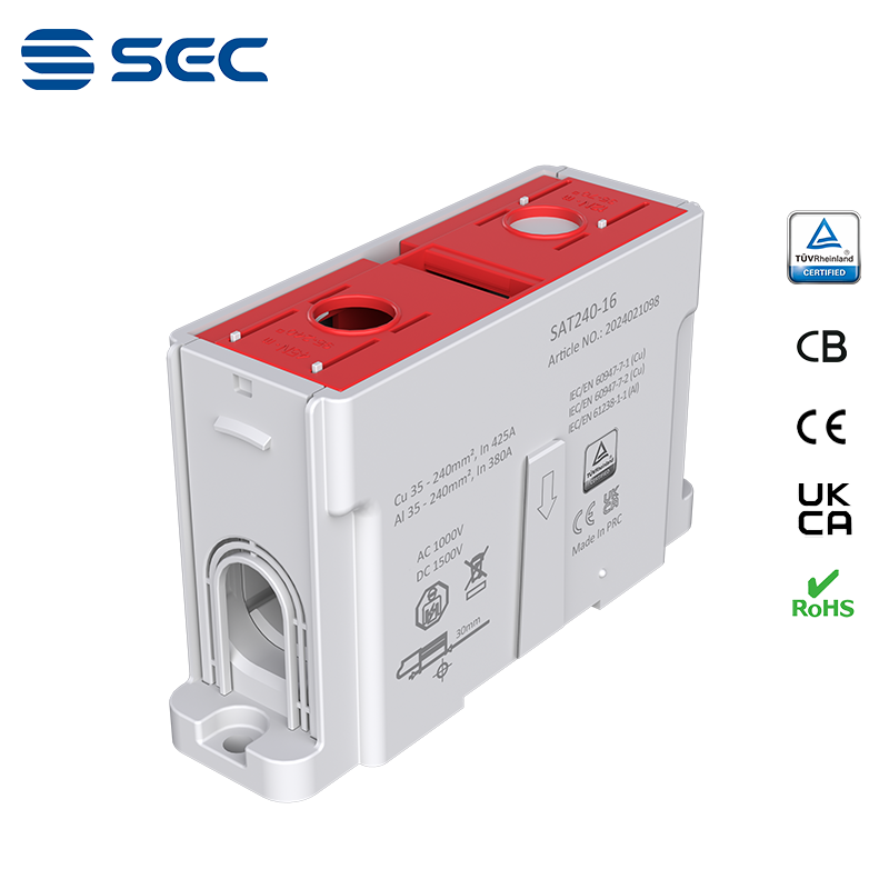 SAT series Al/Cu universal terminal block is totally patent design product by STRONG ELECTRIC, which offers the best quality, safety installation features in the market. All the product already got TUV mark, CB, CE, UKCA, RoHS certificate. It was designed for both copper conductor and Aluminum conductor. The most important is this terminal block are allowed each pieces of product can connect each other easily.
