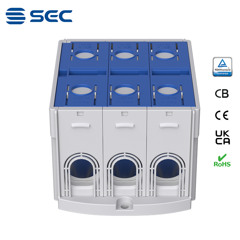 SAT series Al/Cu universal terminal block is totally patent design product by STRONG ELECTRIC, which offers the best quality, safety installation features in the market. All the product already got TUV mark, CB, CE, UKCA, RoHS certificate. It was designed for both copper conductor and Aluminum conductor. The most important is this terminal block are allowed each pieces of product can connect each other easily.