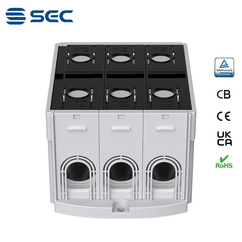 SAT series Al/Cu universal terminal block is totally patent design product by STRONG ELECTRIC, which offers the best quality, safety installation features in the market. All the product already got TUV mark, CB, CE, UKCA, RoHS certificate. It was designed for both copper conductor and Aluminum conductor. The most important is this terminal block are allowed each pieces of product can connect each other easily.